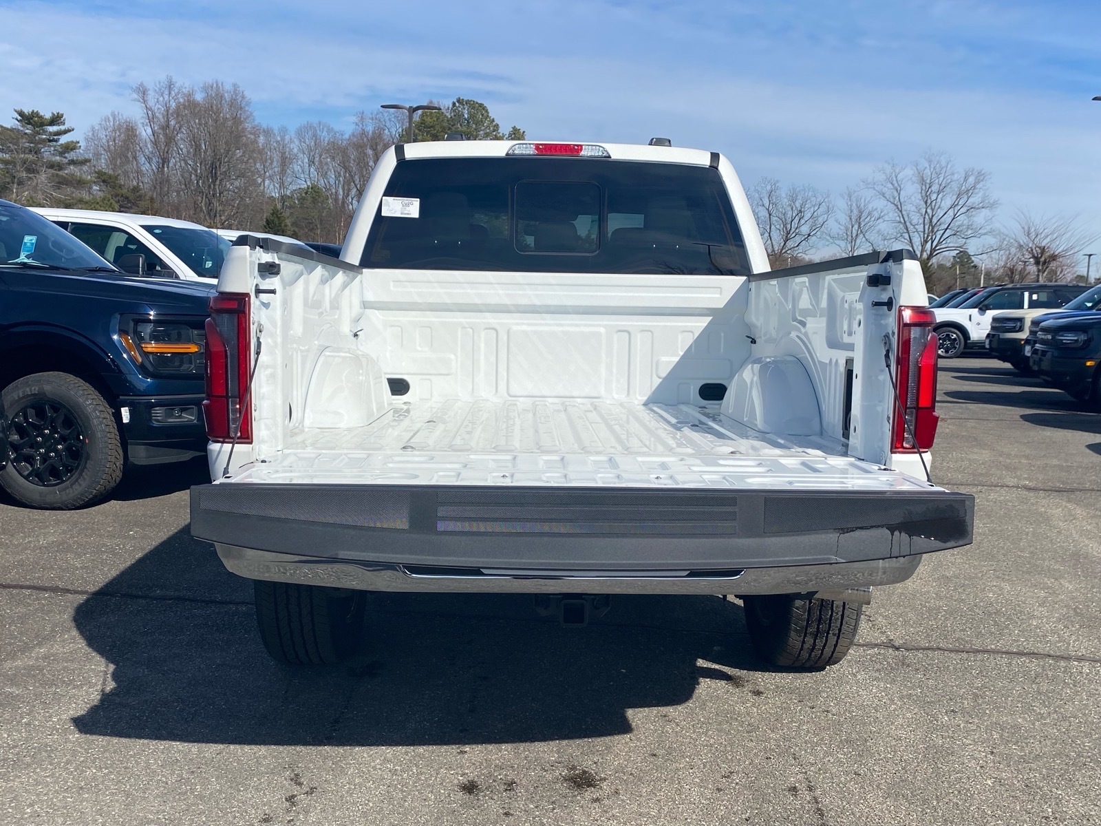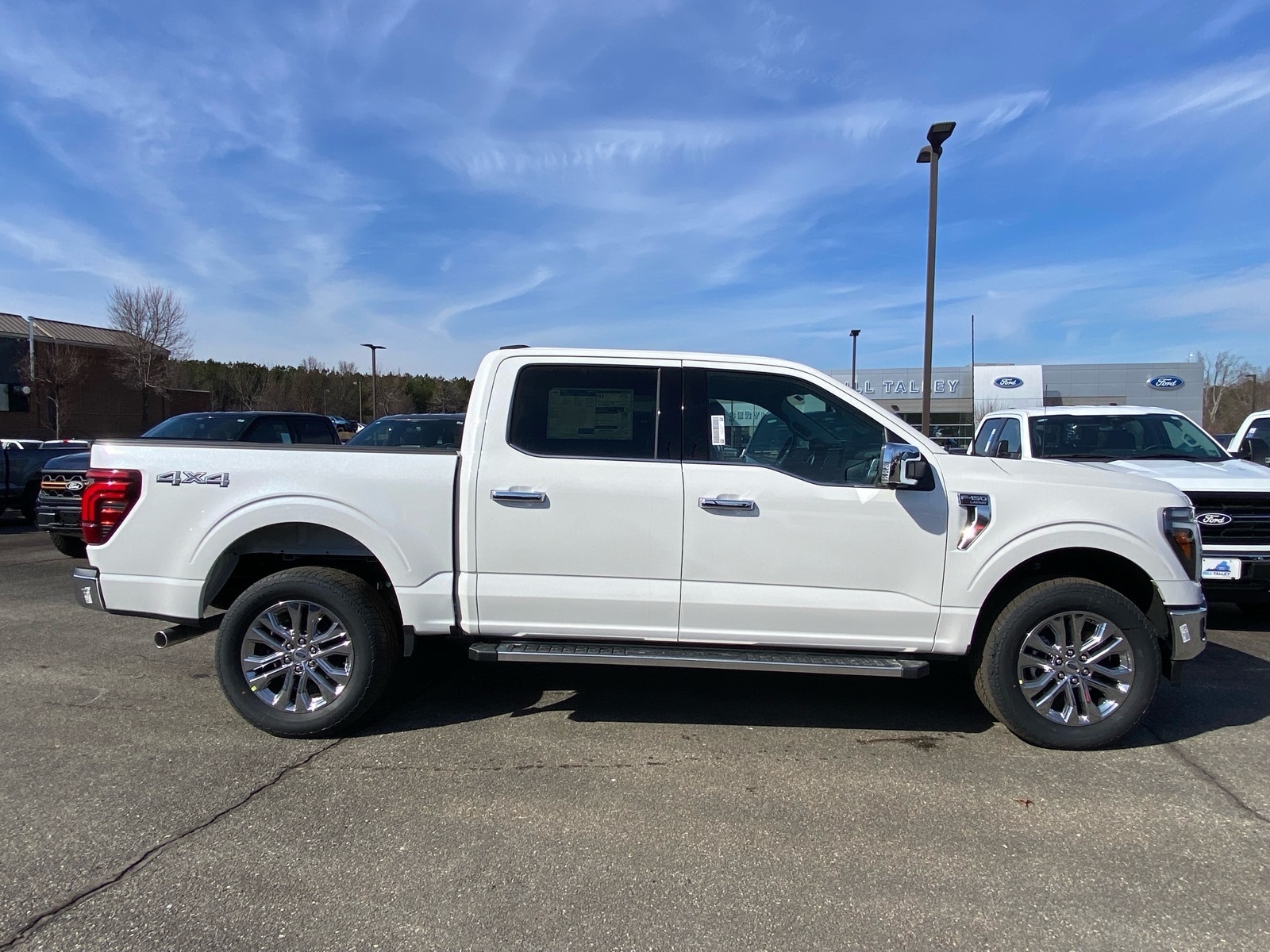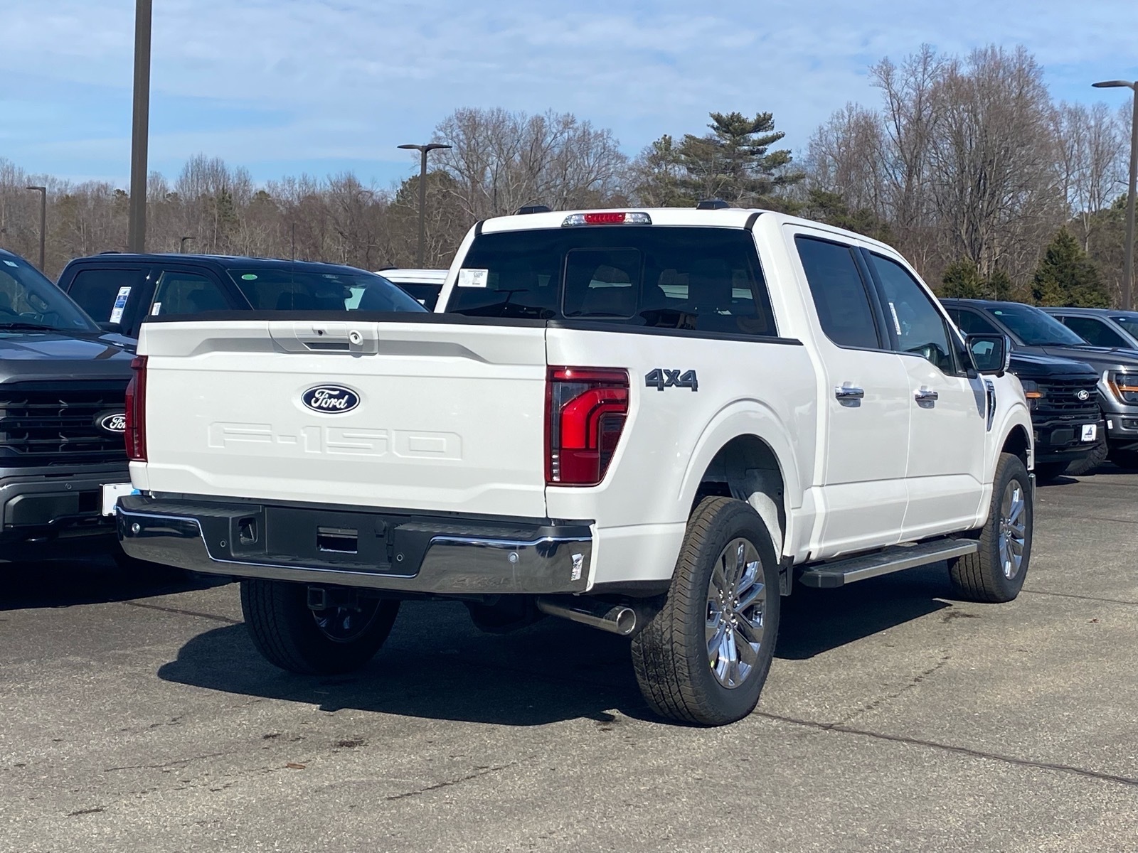 White 2026 Ford F-150 Lariat 4WD 10-Speed Automatic 3.5L V6 EcoBoost 4WD. Equipment Group 501A Mid (Illuminated Driver and Passenger Visors, Power-Adjustable Pedals with Memory, Power-Sliding Rear Window, Radio: B&O Sound System by Bang and Olufsen, SYNC 4 with Enhanced Voice Recognition, and Wheels: 20Chrome-Like PVD), Ford Connectivity Package (1-Year Included), Internet access capable: 5G Modem - Ford Connectivity Package, 4WD, 4-Wheel Disc Brakes, 8 Speakers, ABS brakes, Air Conditioning, Alloy wheels, AM/FM radio: SiriusXM with 360L, Auto High-beam Headlights, Auto-dimming door mirrors, Auto-dimming Rear-View mirror, Automatic temperature control, Brake assist, Bumpers: chrome, Chrome wheels, Compass, Delay-off headlights, Driver door bin, Driver vanity mirror, Drivers Side SecuriCode Keyless-Entry Keypad, Dual front impact airbags, Dual front side impact airbags, Electronic Stability Control, Emergency communication system: SYNC 4 911 Assist, Front anti-roll bar, Front Bucket Seats, Front Center Armrest, Front dual zone A/C, Front fog lights, Front License Plate Bracket, Front reading lights, Front wheel independent suspension, Fully automatic headlights, Garage door transmitter, Heated door mirrors, Heated front seats, Heated steering wheel, Illuminated entry, Low tire pressure warning, Memory seat, Navigation system: Connected Navigation, Occupant sensing airbag, Outside temperature display, Overhead airbag, Overhead console, Panic alarm, Passenger door bin, Passenger vanity mirror, Power door mirrors, Power driver seat, Power passenger seat, Power steering, Power windows, Radio data system, Rain sensing wipers, Rear reading lights, Rear seat center armrest, Rear step bumper, Rear window defroster, Remote keyless entry, Security system, Speed control, Split folding rear seat, Steering wheel mounted audio controls, Tachometer, Telescoping steering wheel, Tilt steering wheel, Traction control, Trip computer, Turn signal indicator mirrors, Variably intermittent wipers, Ventilated front seats, and Wheels: 18Chrome-Like PVD. Price includes: $2000 - Retail Customer Cash. Exp. 03/31/2026