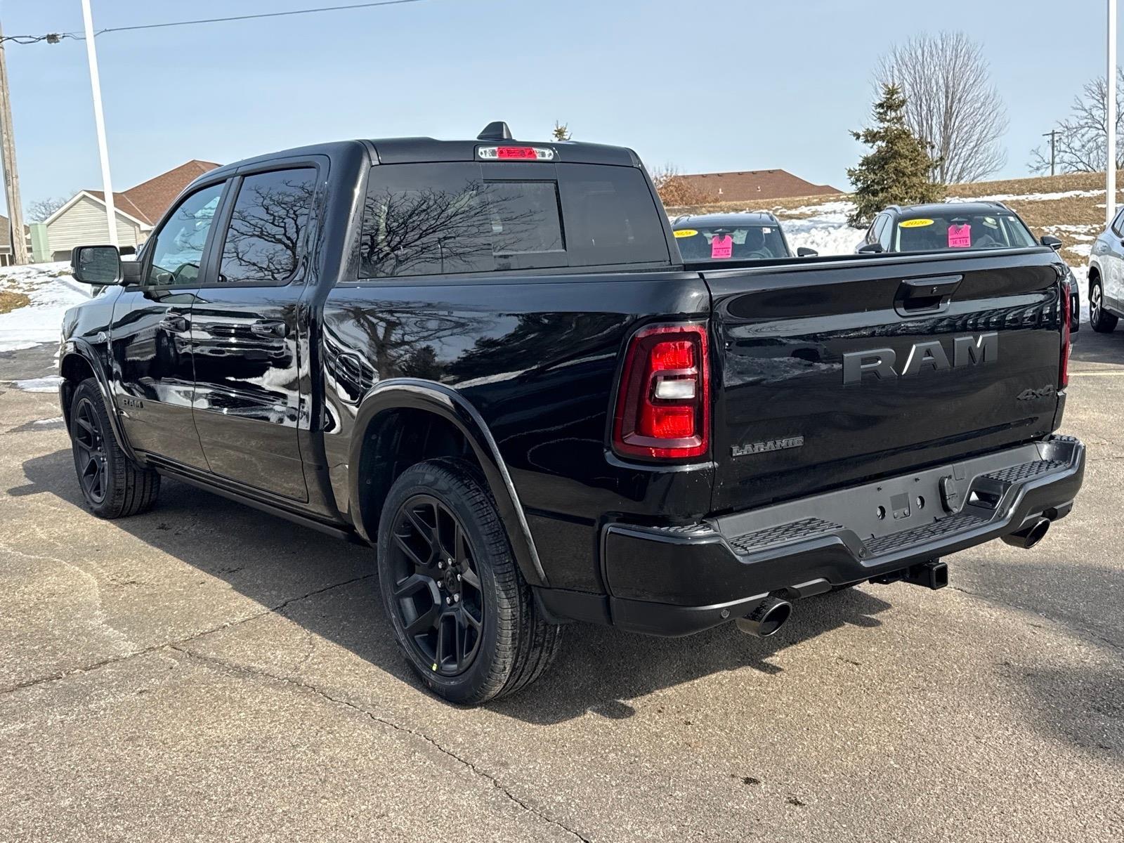 Recent Arrival! The 2026 RAM 1500 Laramie Crew Cab 4�4 blends refined comfort with cutting-edge technology to transform every drive into a connected, confident experience. Inside, youll enjoy the advanced Uconnect 5 Nav system with a 12.0-inch touchscreen display, SiriusXM 360L, Ram Connect (Connected Services) trial, and a 7.0-inch TFT cluster display that makes information easy to view at a glance. Safety and driver-assistance features like Adaptive Cruise Control with Stop and Go, Blind-Spot and Cross-Path Detection, Full-Speed Forward-Collision Warning Plus, and ParkSense Front and Rear Park-Assist help keep you secure behind the wheel on city streets and open highways alike. Premium interior touches such as leather-trimmed seats, heated front and second-row seats, and a heated steering wheel round out a cabin thats as sophisticated as it is capable. Built to handle heavy-duty tasks with confidence, this RAM 1500 Laramie is equipped with a 5.7L V8 HEMI eTorque engine and Class IV receiver hitch, delivering a maximum towing capacity of up to 11,210 lbs when properly equipped ideal for hauling trailers, boats, or campers with ease. Whether youre gearing up for a weekend adventure or managing demanding worksite needs, this truck delivers exceptional strength paired with intelligent engineering. Dont miss your chance to experience the power and innovation of the RAM 1500 Laramie contact us today to schedule your test drive and make it yours.. This vehicle includes a 3-Year/36,000-Mile Comprehensive Warranty, 5-Year/100,000-Mile (diesel) or 5-year/60,000-Mile (gas) Powertrain Warranty, Roadside Assistance, and 8-year/80,000-Mile Emissions Warranty! Manufacturer Suggested Retail Price may not reflect the actual sale price. Price excludes tax, title, license, service fee, and any dealer-installed accessories. All customers qualify for the price listed above. You may qualify for additional conditional rebates that may lower your price; ask us for details. All offers are subject to change after month-end so come visit us and test-drive this vehicle today! Excludes Tax, Title, License, Service Fee and any dealer installed accessories. Extra Bonuses may be available - See Dealer for Details! Price includes: $1000 - 2026 National Bonus Cash . Exp. 03/02/2026 $3500 - 2026 National Retail Consumer Cash . Exp. 03/02/2026
