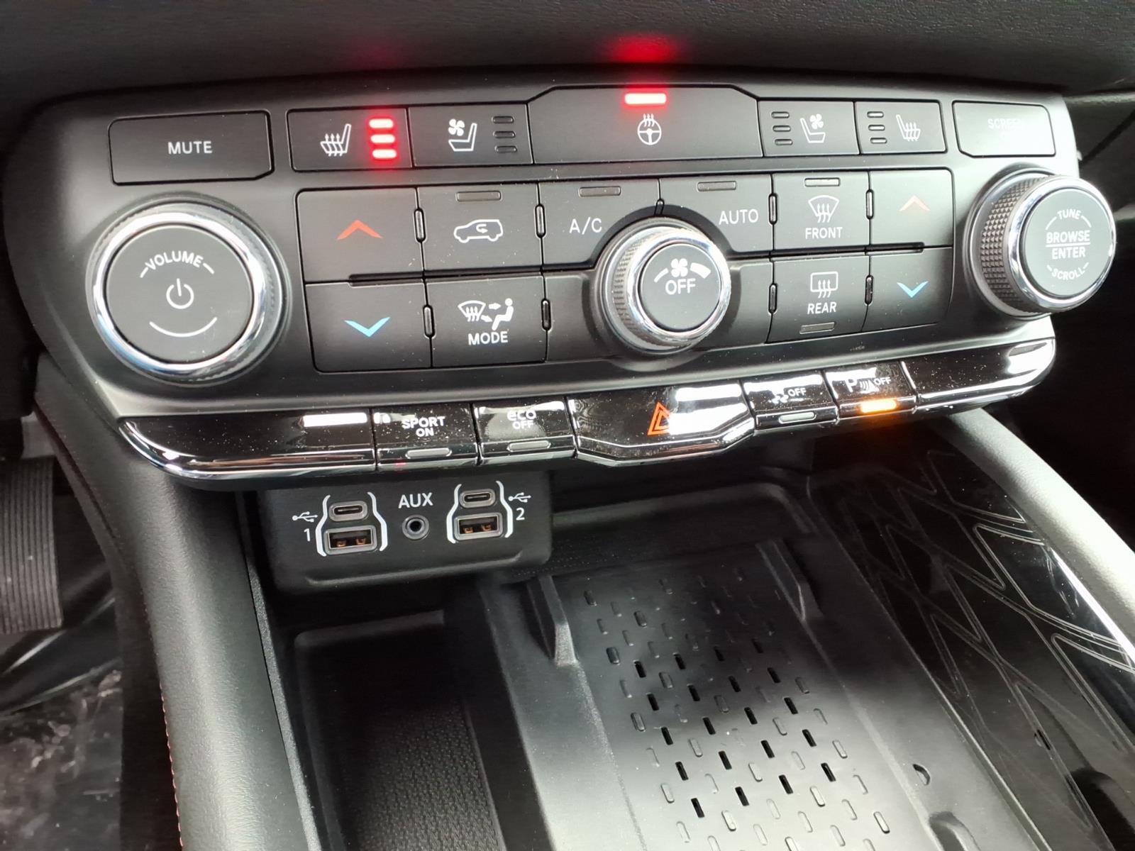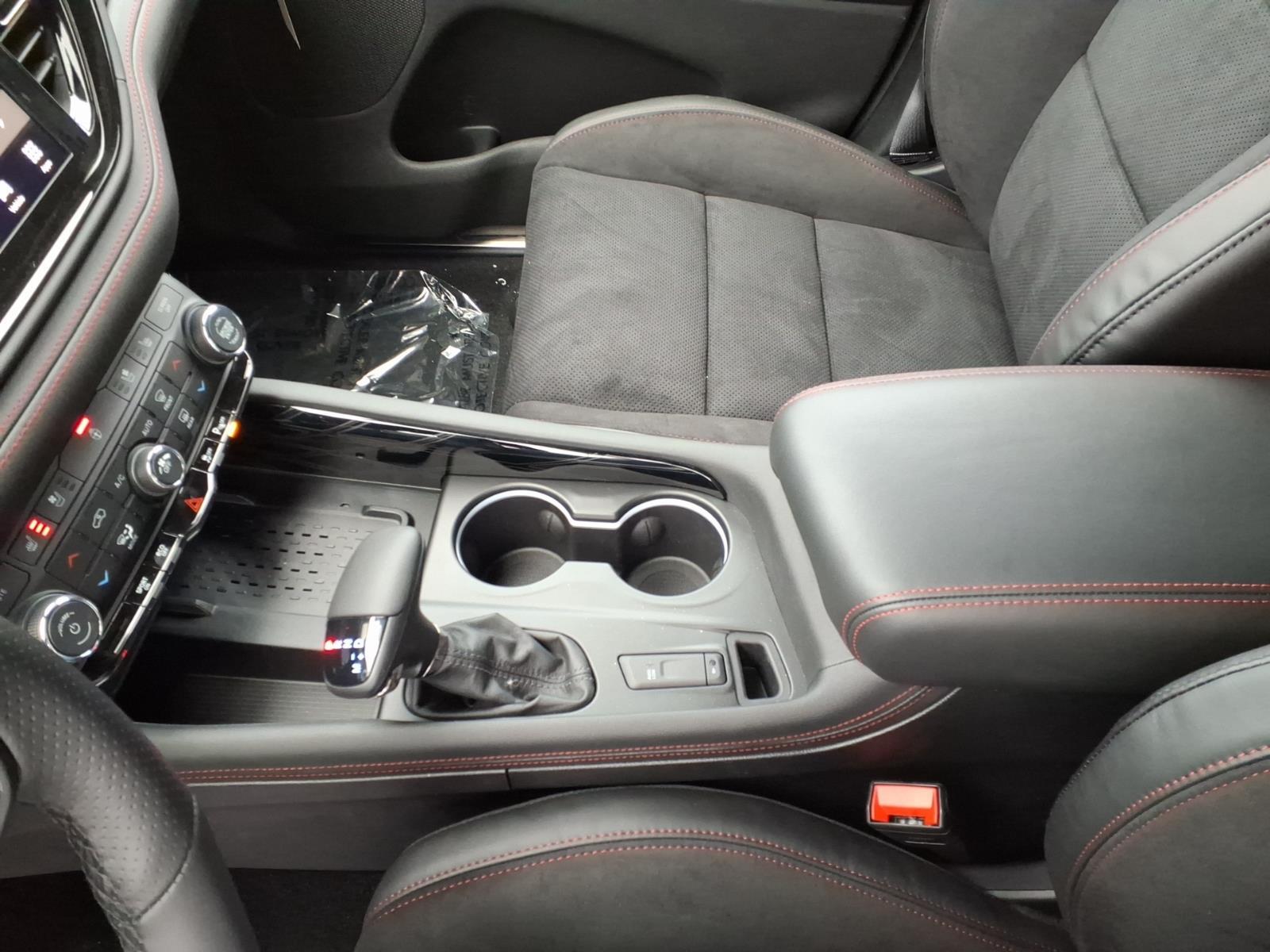 Inside the refreshed passenger cabin, new appointments include a hand-wrapped dashboard with live silver accent stitch, SRT flat-bottom performance steering wheel with standard paddle shift, heated and ventilated front and heated second-row captain’s chairs with embossed SRT logos. Nappa leather with suede inserts and silver-stitched SRT logos are standard. Demonic Red Laguna leather interior with embossed SRT logos is optional.