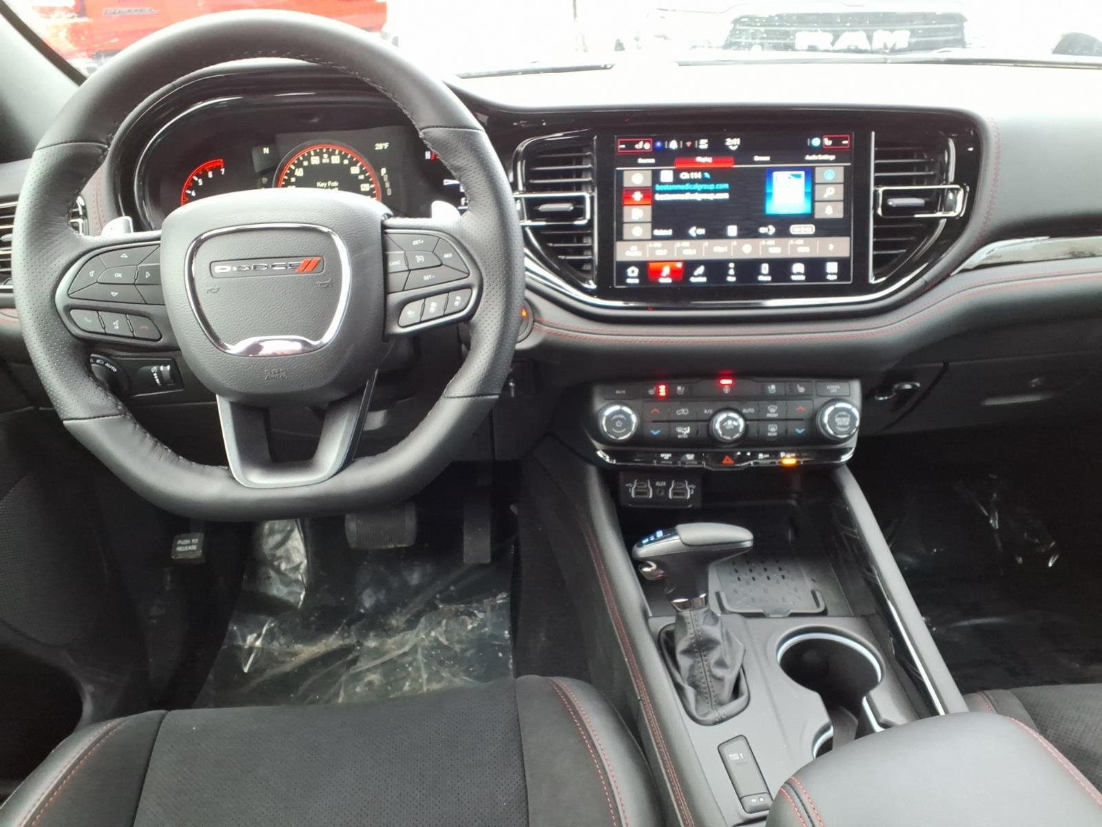 Other luxurious touches brought to Durango for the first time in the SRT model include new Light Black Chrome center stack, HVAC, full console and door handle bezels along with two choices of decorative bezels. Standard finish is Matte Reverse Chain, and for the first time on Durango a true carbon-fiber instrument panel and door bezels will be offered (late availability). Premium velour bound floor mats with embroidered SRT logo are standard. Adding to the impact of the hand-wrapped instrument panel, the headliner and A pillars are available in Dynamica suede.